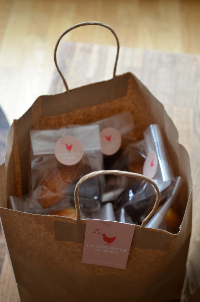 I’m very happy to announce that La Cocotte en sucre is growing and is now selling baked pastries in New York and in some parts of the tri-state area ! First big order delivered on Monday morning with 125 bags, each one of them containing a madeleine and a cannelé…I’m so happy that I’m including some pics 😉